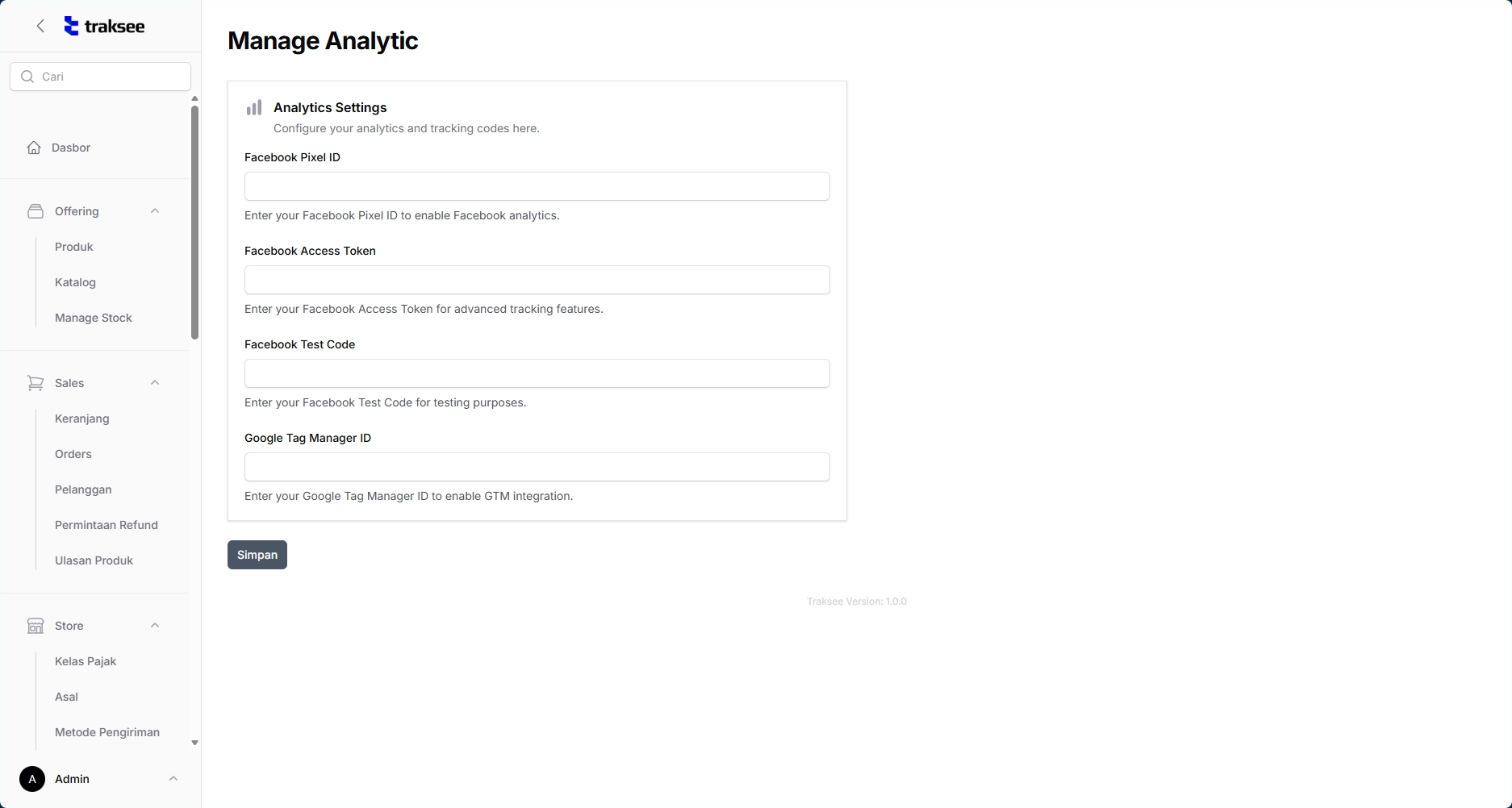 Fitur untuk mengintegrasikan layanan analitik guna memantau trafik pengunjung.